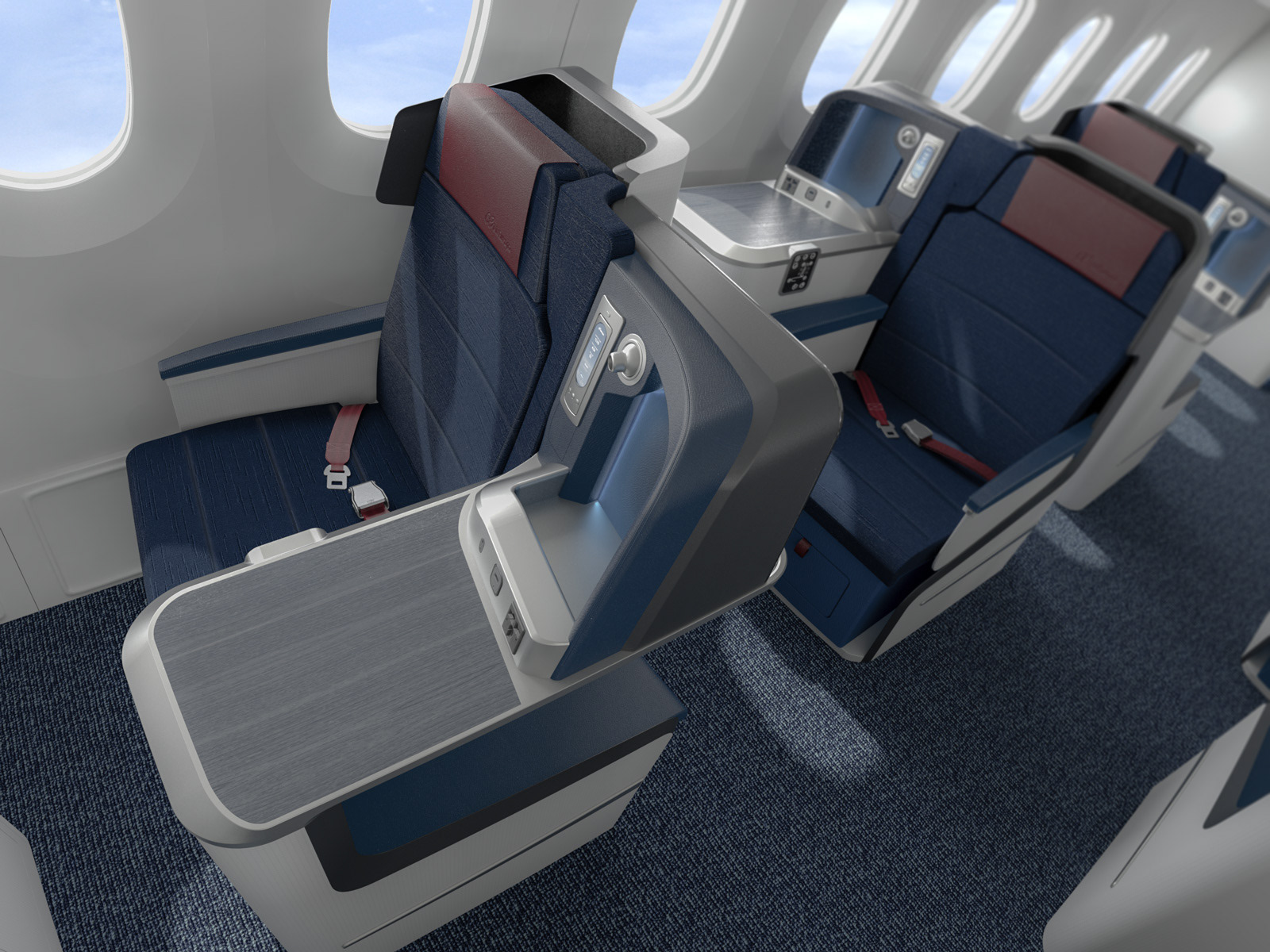 Creación de imágenes para la presentación de un nuevo diseño de cabina de avión de pasajeros.